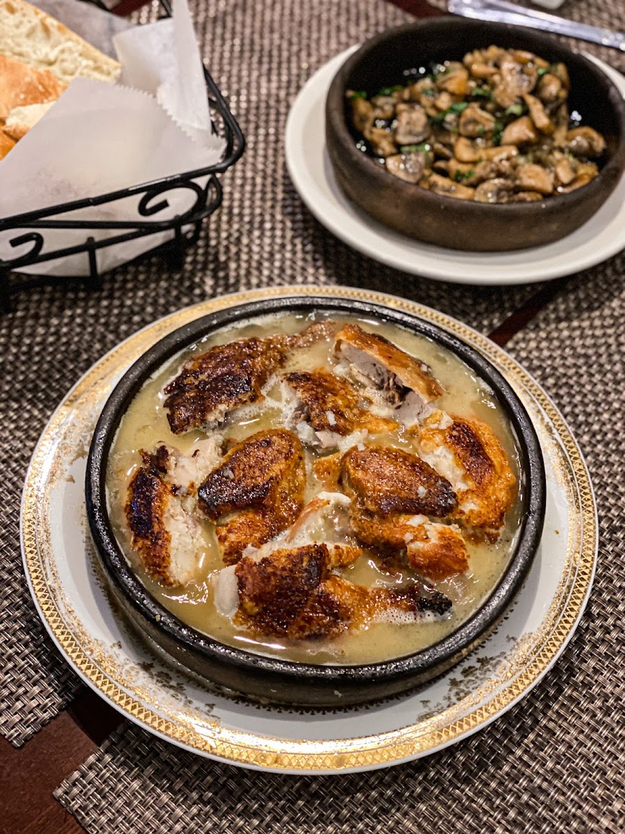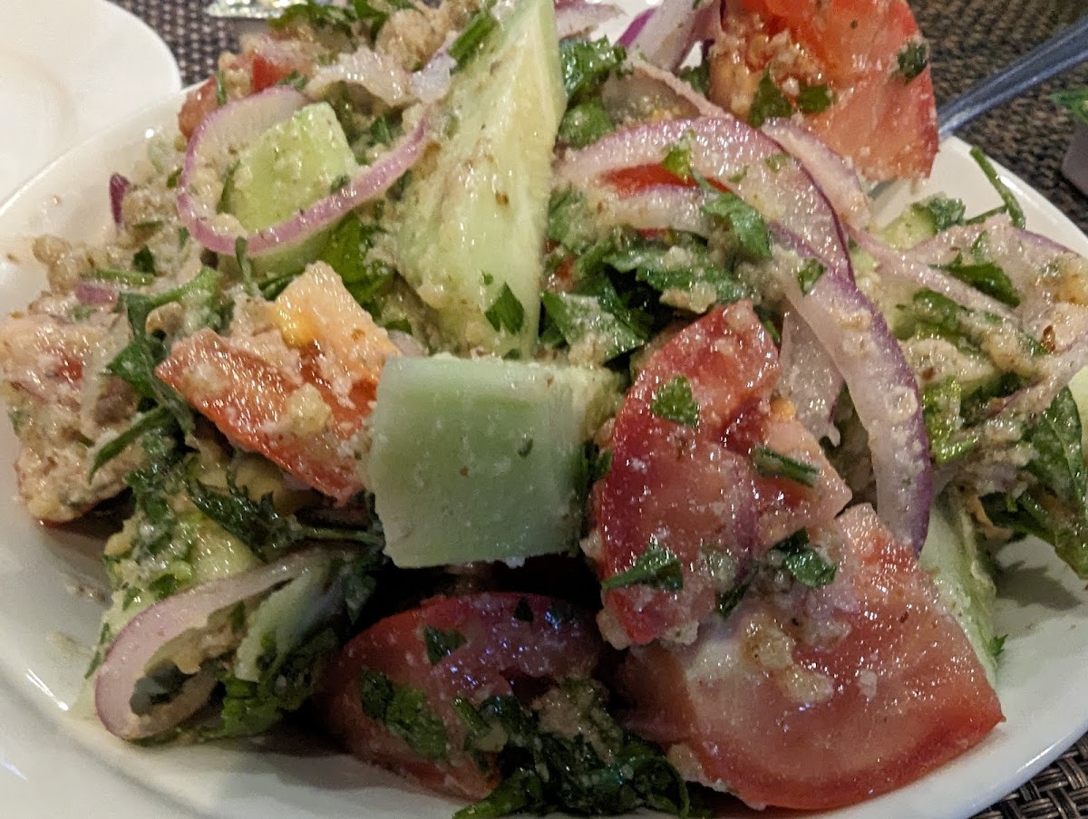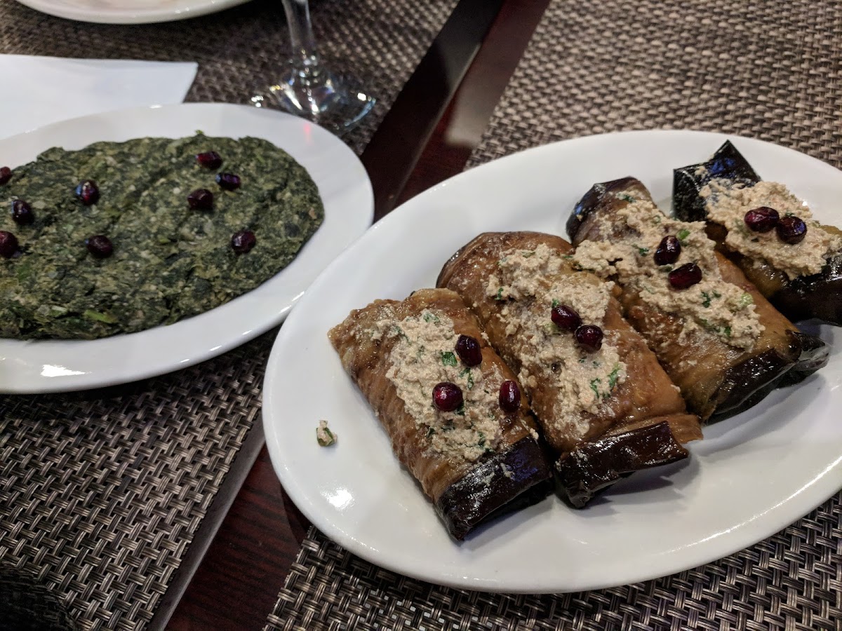 We ordered the walnut salad, kharcho, dumplings, walnut eggplant, and fried chicken in garlic sauce. The food was pretty good over all except for the fried chicken in garlic sauce - it was just a tad too salty for our taste. The service was excellent. We were given excellent instructions on how to eat the dumplings because this cuisine isn't what my group was used to. When we ordered the dumplings it comes in 6 and we asked the server if we can get 3 regular and 3 fried and they accommodated. The service was very professional and friendly. Overall the food was good, the service was excellent and the place was clean and still playing Christmas music which isn't a negative in my book